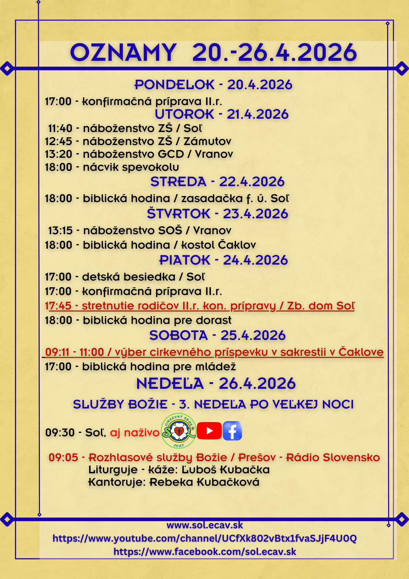 Modlíme sa za: Pondelok – Hrnčiarska Ves (NoS)