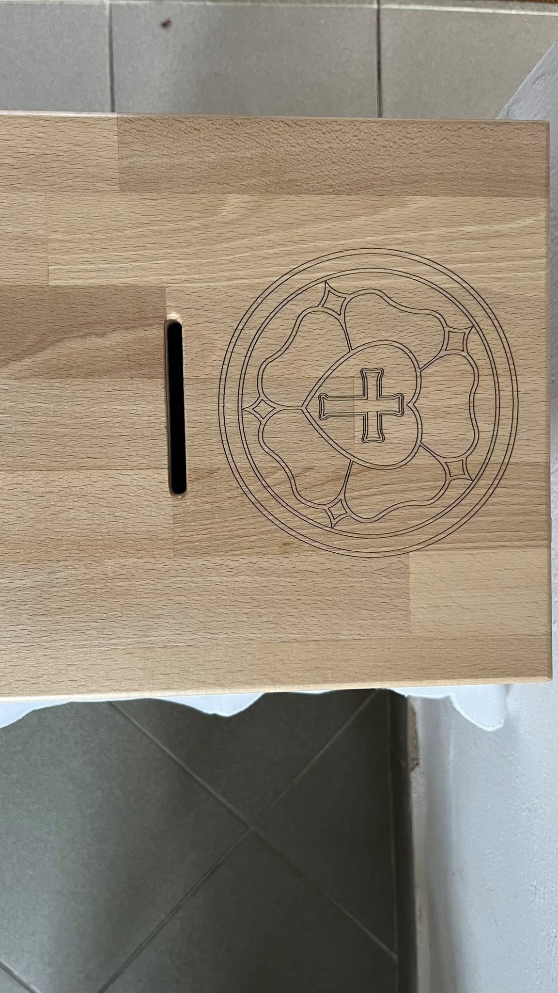 B. Peter Jakubov z Čaklova spolu s kurátorom Matejom Mattom vyrobili nové pokladničky na oferu.