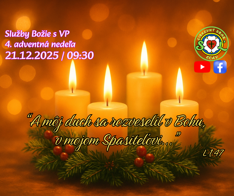 POZÝVAME VÁS NA SLUŽBY BOŽIE│4. ADVENTNÁ NEDEĽA│21.12.2025